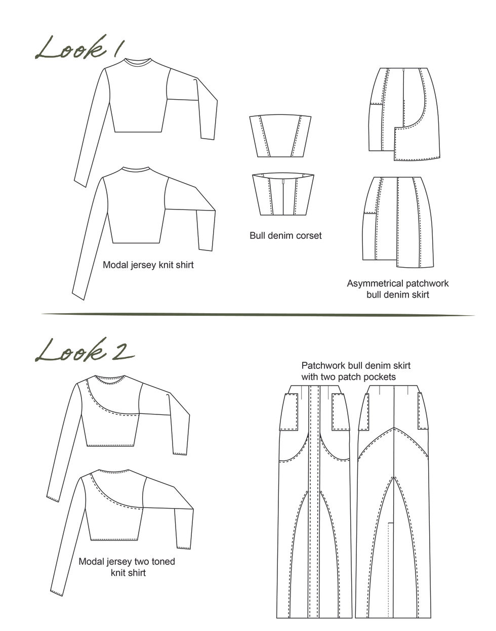 PLAITS is a personal collection that features the technique of braiding in intricate details throughout, resulting in multiple styles made exclusively from bull denim and modal jersey.